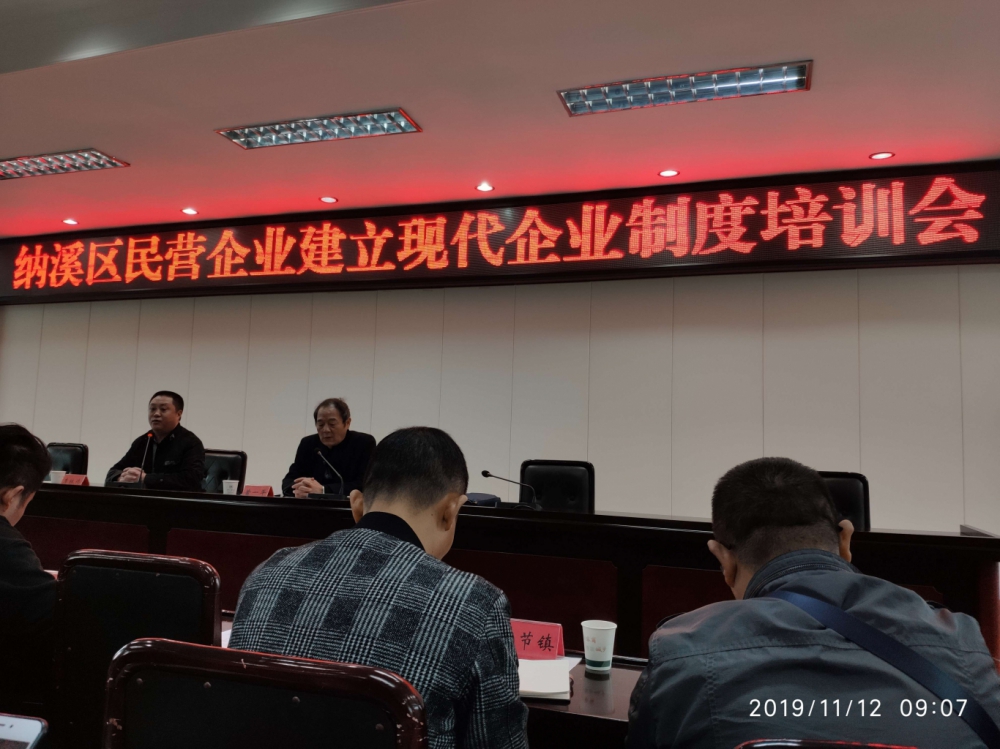 由納溪區非公有制經濟局組織的建立現代企業制度培訓會在納溪區政府大會議室正式舉行,我公司響應。